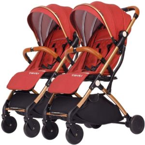 WYZXR Cochecito Gemelo Desmontable, Carro Doble para bebés, Carro portátil Plegable Ligero para niños Marco de Carro Dorado de Aluminio (Color: Naranja)